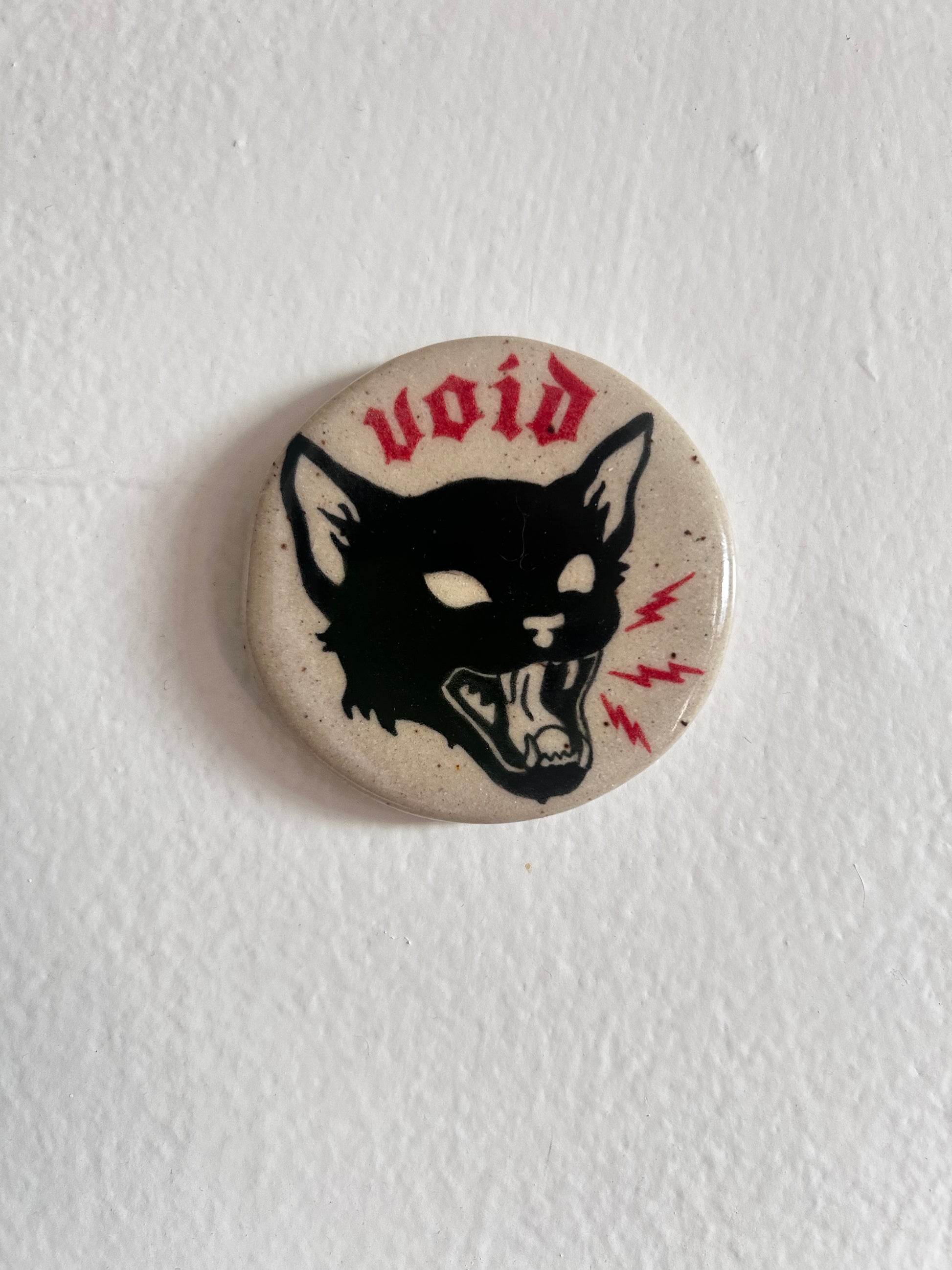 handmade with love and a little notch in the back so she can be hung on a wall.