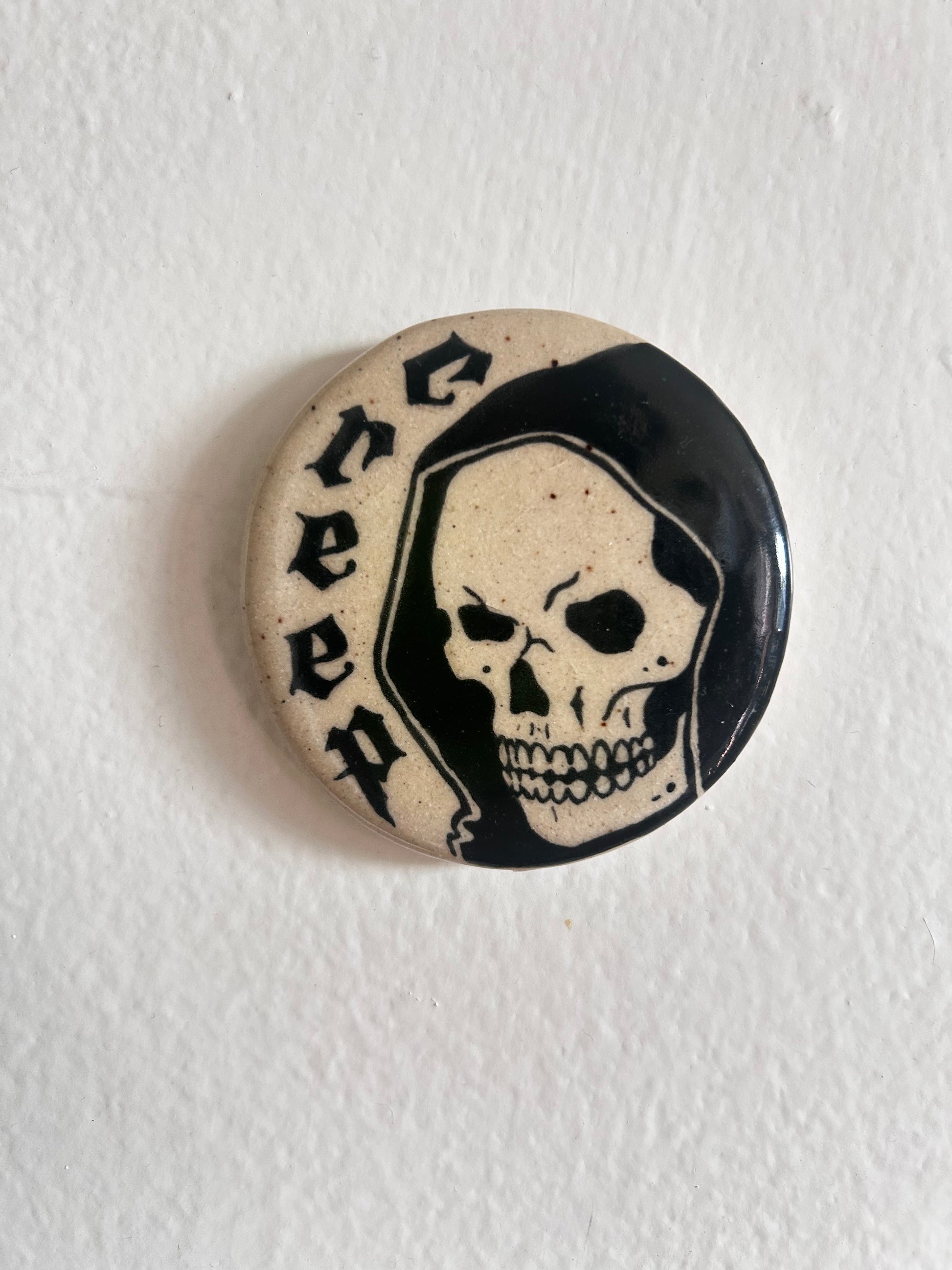handmade with love and a little notch in the back so she can be hung on a wall.